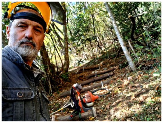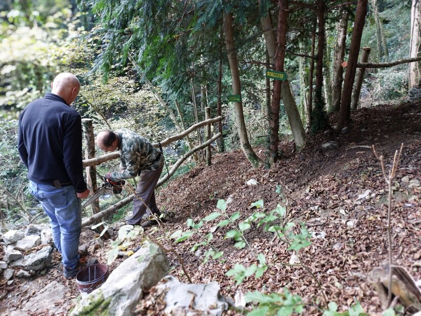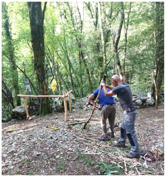 Volontari intenti alla Posa della protezione in un tratto ripido