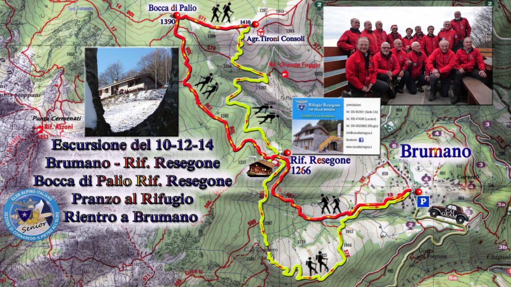 La cartina realizzata dal Cai per raggiungere il Rifugio Resegone. In giallo il percorso che parte da Brumano, in azzurro quello da Fuipiano (Photo courtesy of Cai)